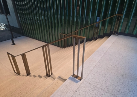 Im prestigeträchtigen Šumi Centre haben Metalllösungen zum anspruchsvollen Aussehen der Innenräume beigetragen. Unser Team hat Metallgeländer für die Treppenhäuser entworfen und fachmännisch installiert, die sich nahtlos in das architektonische Design einfügen und ein Gefühl von Raffinesse und Sicherheit vermitteln.