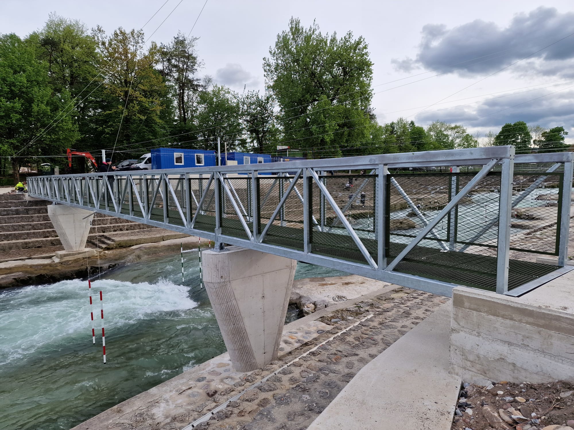 Wir übernahmen den gesamten Prozess - vom Entwurf bis zur Montage der Stahlkonstruktion. Die Brückenkonstruktion wurde mit Blick auf ein optimales Gleichgewicht zwischen Tragfähigkeit und optischer Leichtigkeit entworfen, um eine stabile und zuverlässige Nutzung zu ermöglichen, ohne Kompromisse beim Aussehen einzugehen. Hochwertiger feuerverzinkter Stahl wurde verwendet, um eine lange Lebensdauer und Korrosionsbeständigkeit auch bei rauen Wetterbedingungen zu gewährleisten. Wir haben die Sicherheit der Benutzer in den Vordergrund gestellt, indem wir Metallgeländer und einen rutschfesten Bodenbelag angebracht haben. Die Brücke fügt sich ästhetisch und funktional in die natürliche Umgebung ein und behindert nicht den Fluss der Wasseroberfläche, was ein durchdachtes Konzept für Design und Platzierung zeigt.